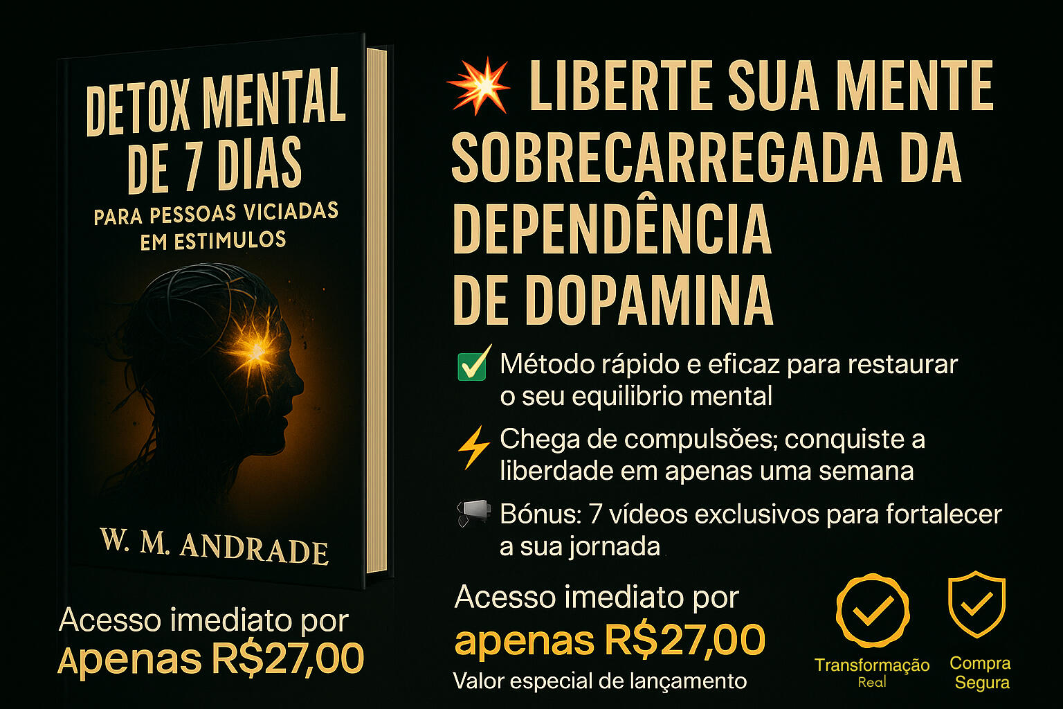 📌 Um plano simples e direto para:🧘♂️ Eliminar o excesso de estímulos que drenam sua mente🧠 Retomar o foco e clareza em tarefas importantes📵 Quebrar o ciclo de distração (sem precisar se isolar do mundo)🚀 Aumentar sua energia mental e produtividade📊 Criar uma rotina mental saudável que se sustenta com o tempo