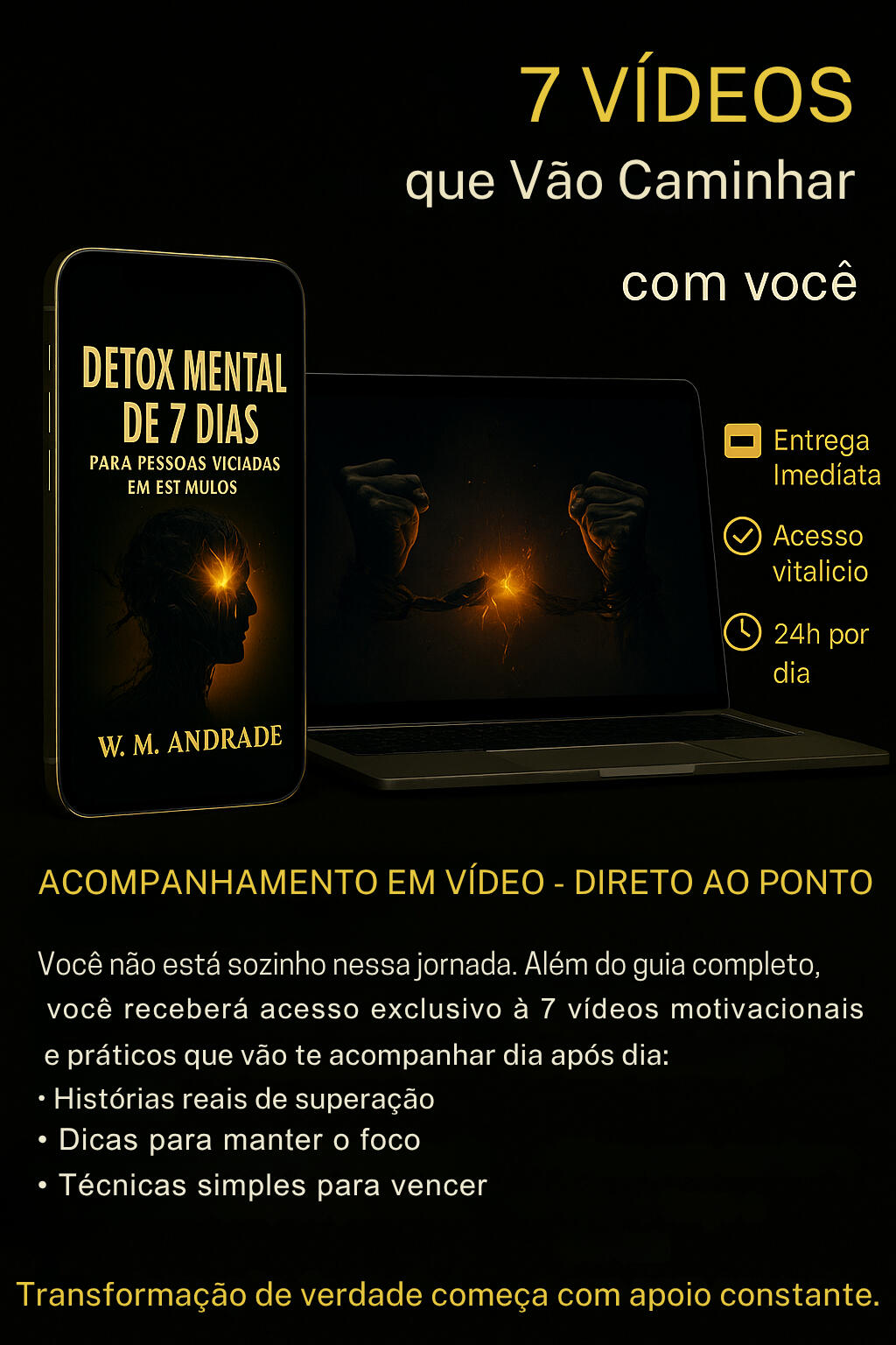 Sobre o AutorW. M. Andrade é um pesquisador autodidata com foco em superação de hábitos destrutivos e desenvolvimento pessoal. Movido pela missão de impactar vidas de forma discreta e transformadora, compartilha conhecimentos práticos para quem busca liberdade, clareza mental e propósito.Através de conteúdos acessíveis e empáticos, busca inspirar outros a viverem com autenticidade e coragem.